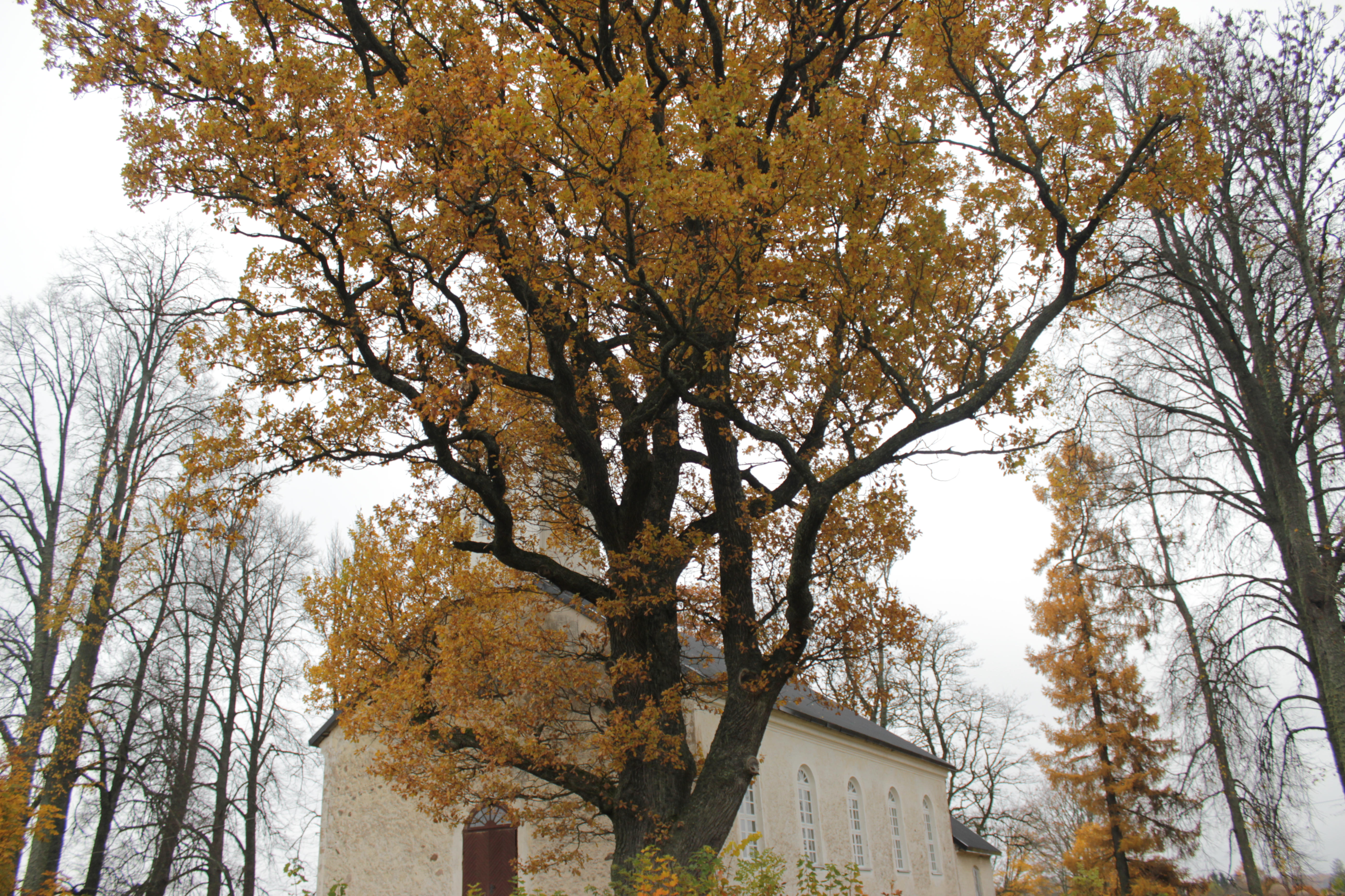 Sõites Tartust Koosale maamajja jääb tee peale alati üks pisike „oaas“ kirikust, mida ümbritsevad kõrged puud. Olles mitmel korral „oaasi“ tee pealt silmanud, meelde jätnud ja mööda vuhisenud, otsustasime kord seda ka lähemalt kaeda. Üllatus oli suur, kui avastasime, et otse kirikaias kasvab vägev ohvritamm. Sellist kahe usu vahelist kooseksisteerimist väiksel kitsal alal oli lihtsalt rõõm näha, tunda ja jäädvustada. Näe, rahu ikka võimalik, ka siin.