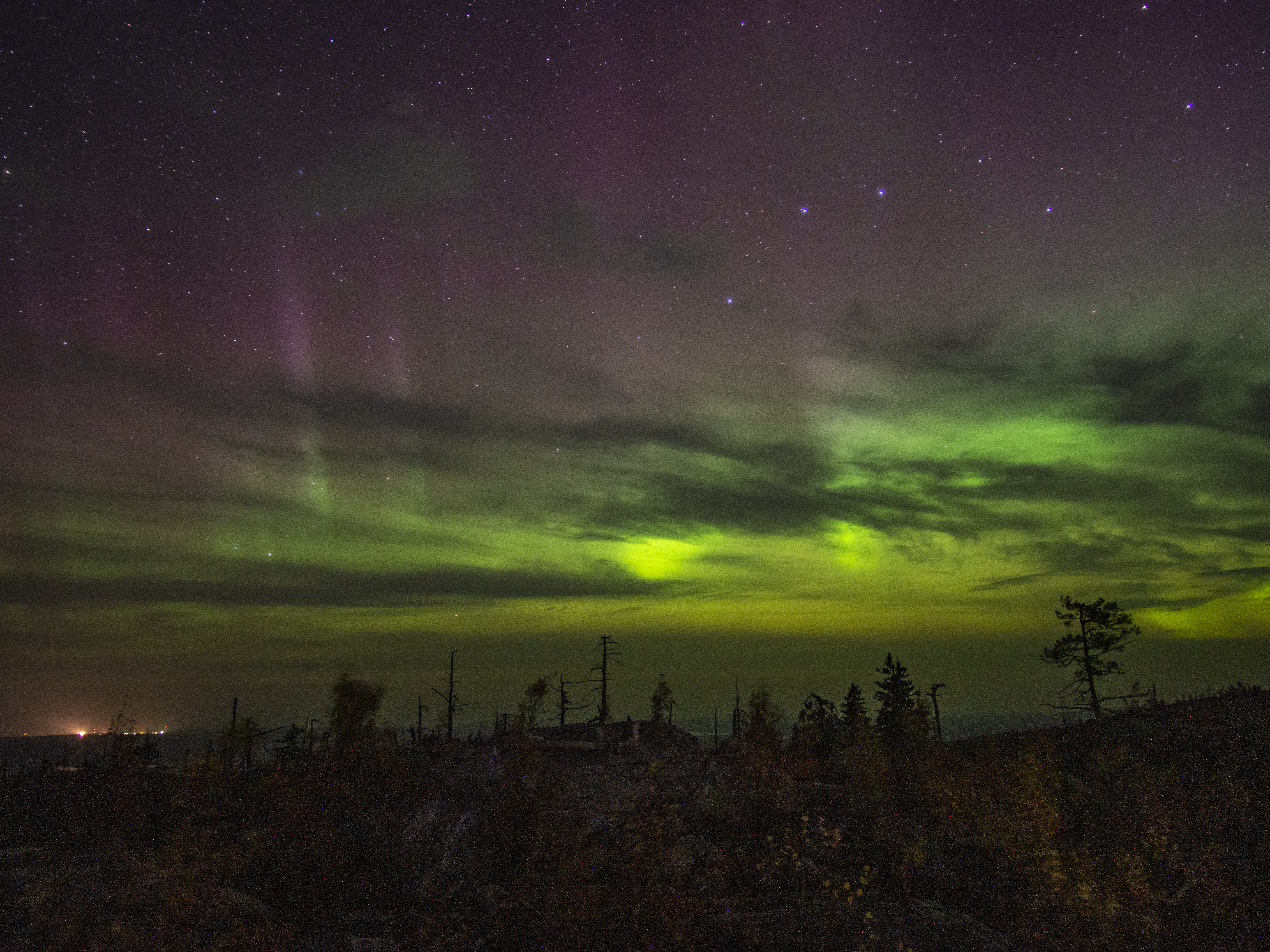 Священная гора Воттоваара известна своими многочисленными сейдами и причудливым образом изогнутыми деревьями. Данная экспедиция была совершена, чтобы запечатлеть над ней красивейшее природное явление - северное сияние.