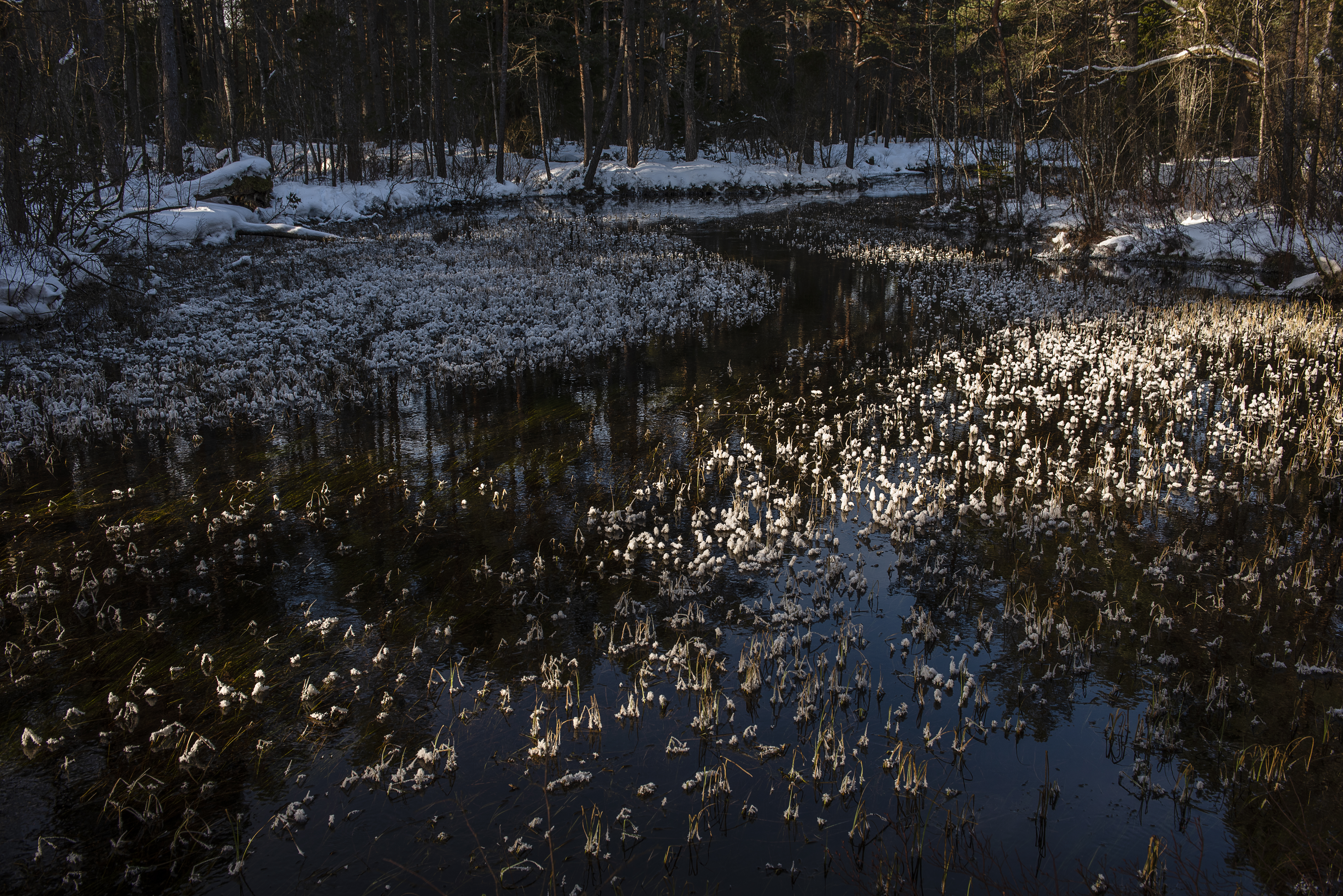 Ere päike muudab veed mustjaks, kui ümber on mets ja päike valgustab vaid neid kohti, kust ta läbi pääseb. Odalätsi allikajõgi oli sel hommikul aga nii ilus, et mustjast ümbrusest hoolimata proovisin pildile saada helevalgeid külmunud "odaotsi" (tuhanded jäänukid Vanapagana odaotsast, kui see Suurt Tõllu eemale peletas?). Need "odaotsad" meenutasid omakorda tuhandeid väikseid hiina sõdureid marssimas oma huku või triumfi poole, läbi jõgede ja soode, mägede ja orgude. Siinkohal võib fantaseerima jäädagi, igatahes näitas allikajõgi mulle edukalt, mida kõike ta maa seest välja õngitseda suudab. Mulle tundus Odalätsi sel hommikul väga lähedane.