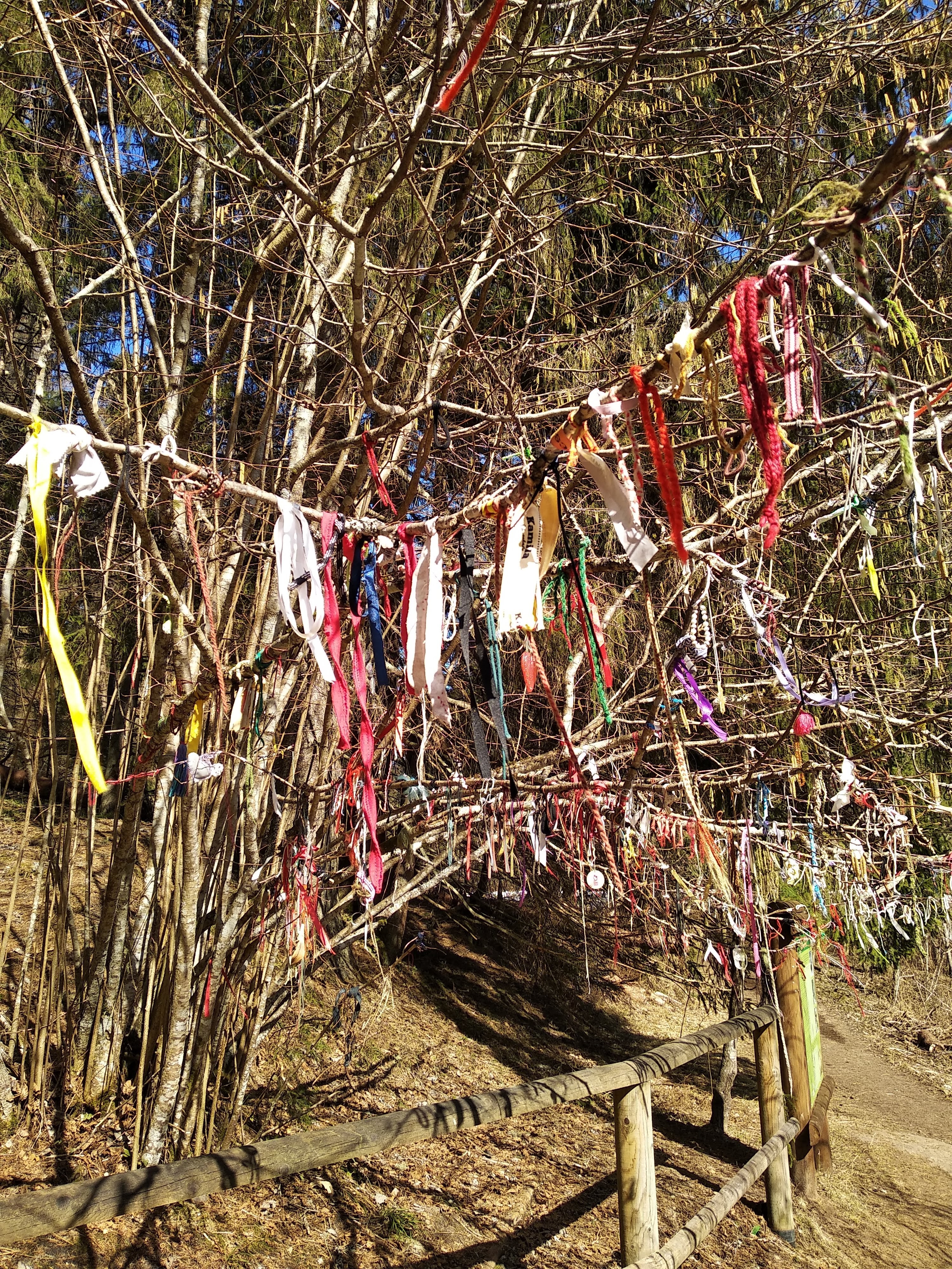 Taevaskojas käies vaatan alati ka lintidega soovipuud. Võib-olla kõiki pole õpetatud, mida on sobilik sinna panna, aga positiivne olla tahtes mõtlen, et ehk on soov traditsiooni jätkata ka juba midagi väärt.