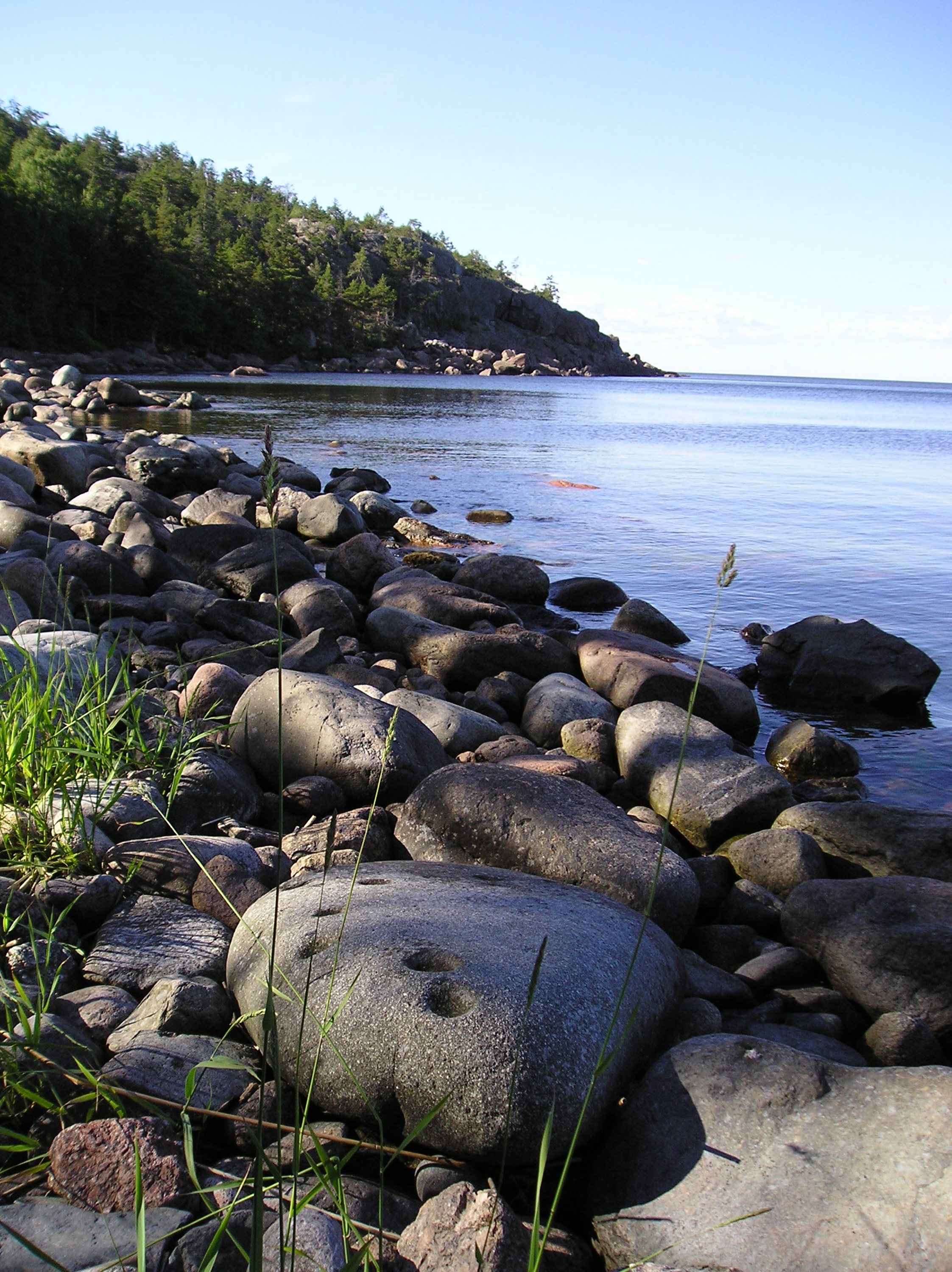 One of the cup-marked stones on the shore of the Gulf of Finland on the island of Hogland (Suursaari). This stone the found of Estonian divers in 1988. In 2005, beside him, the author recorded two more stone.