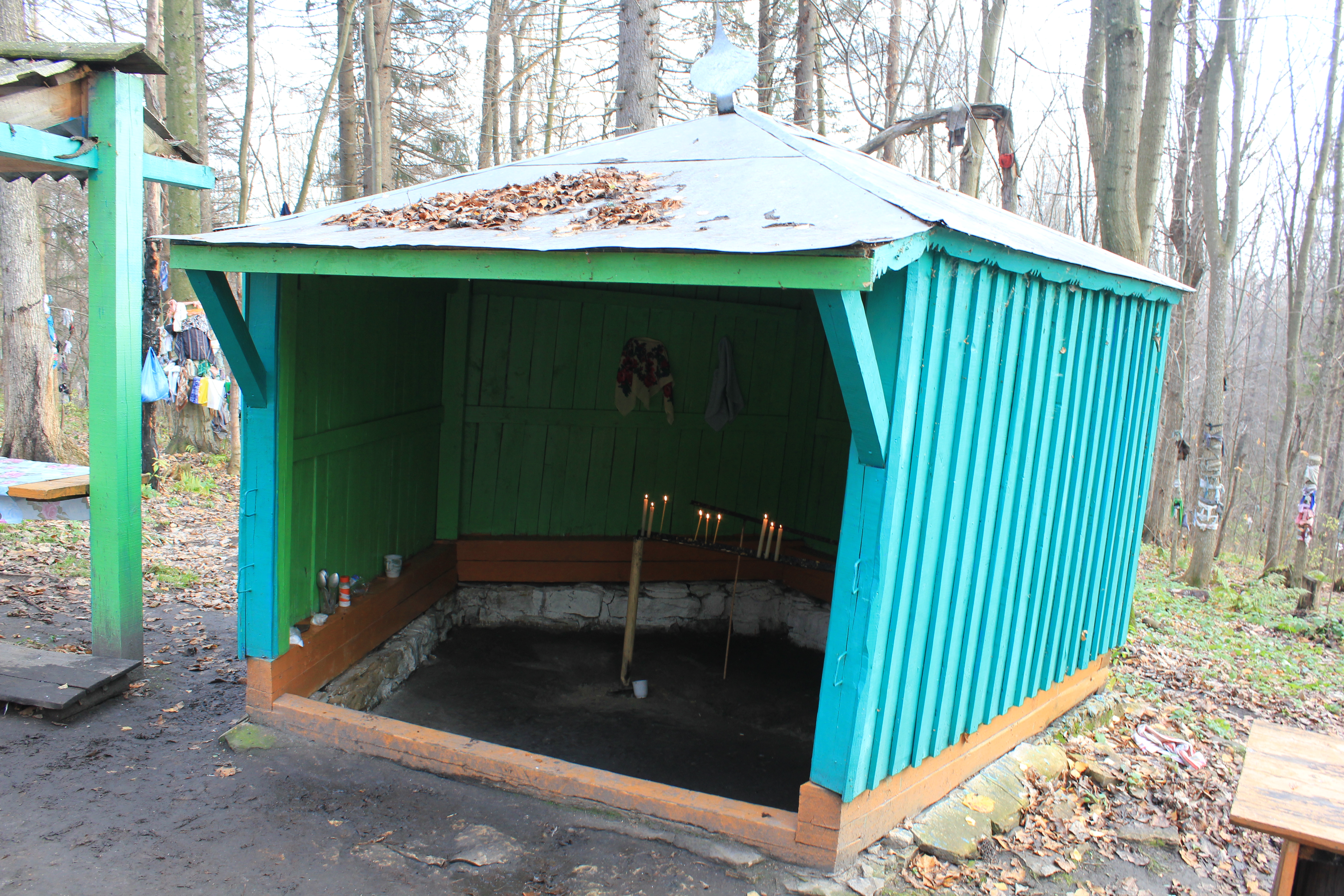 Курук йомо - гора бога. глубоко в марийских лесах в районе деревни Чодраял находится святилище Курук йомо - гора бога. Здесь до сих пор проводят обряды по всем правилам на марийском языке. Фото сделано во время прохождения здесь обряда. Лес в округе увешан полотенцами, священный родник, большие зольные кучи с жертвенной золой свидетельствуют о древности святилища. Здесь довольно много построек культового назначения