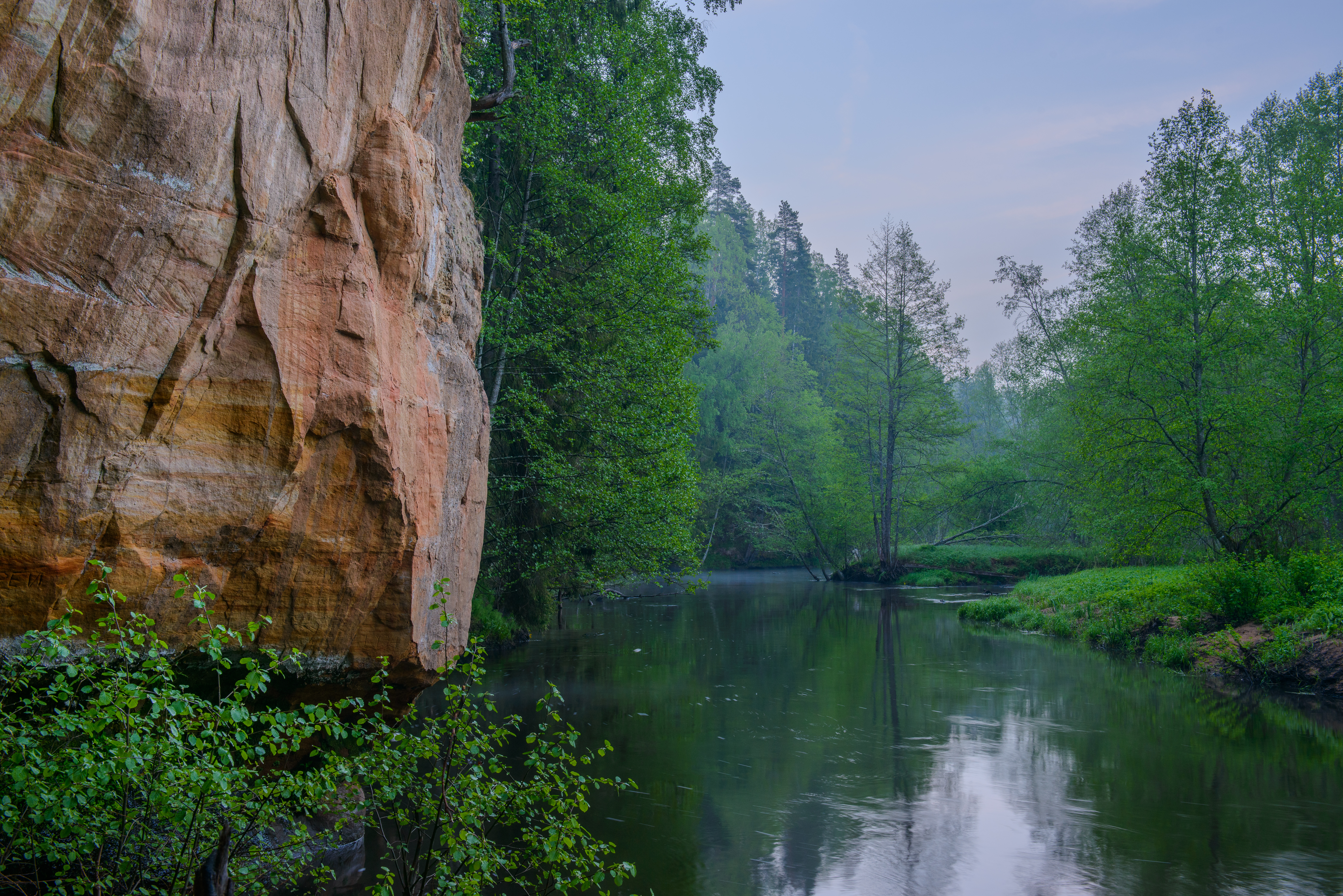 Maikuine õrnudune varahommiku Võhandu Pühajõel. Uku koopa pärimus: https://www.puhkaeestis.ee/et/sojatare-muurid-ja-uku-koobas