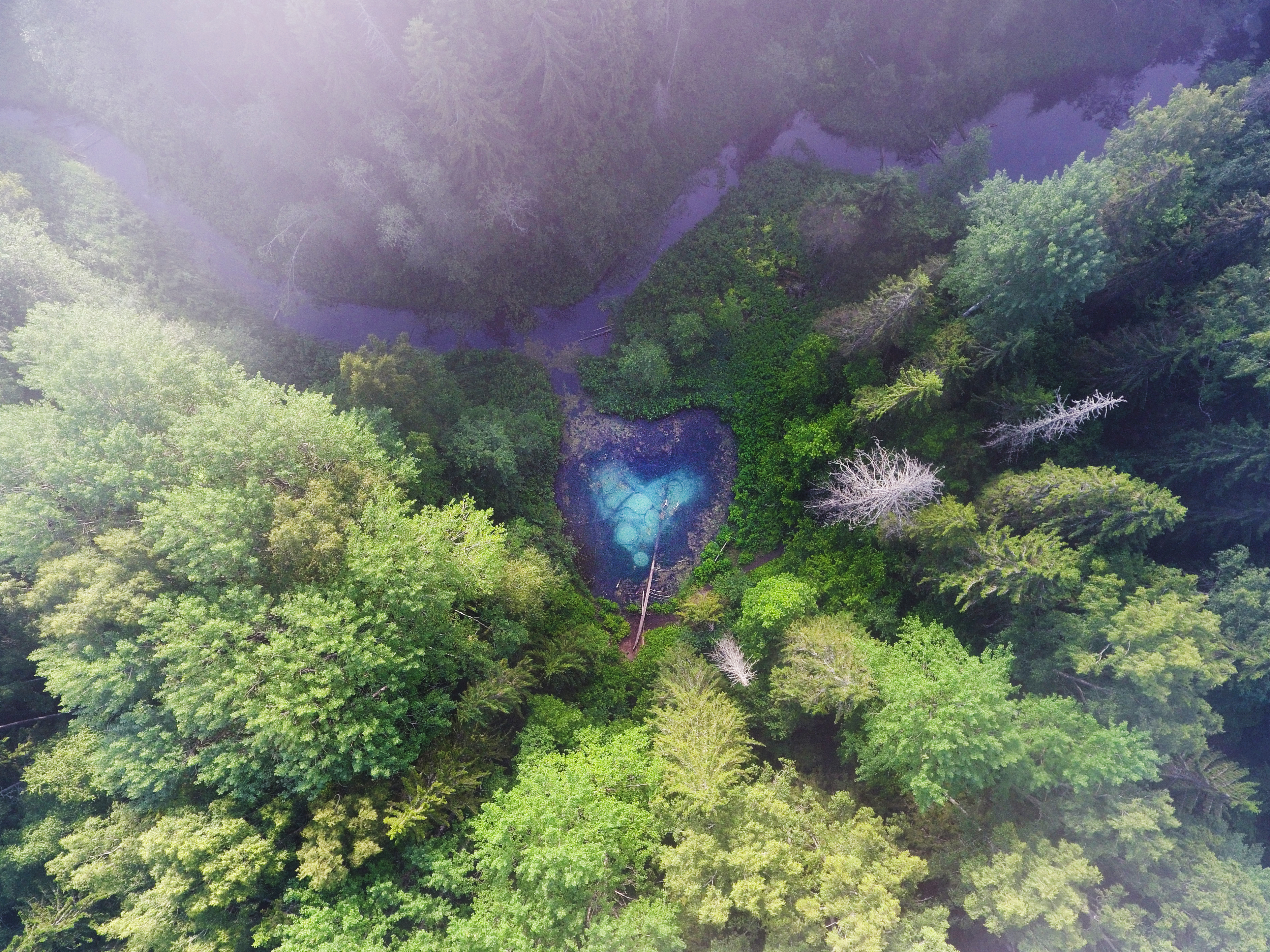 Muistsete eestlaste jaoks olid Siniallikad tervendava toimega ja neid tuntakse ohvriallikatena. Nii võib öelda, et tegemist on Eesti rahvakultuuris vägagi tähtsate loodusobjektidega. Samuti on muistsete eestlaste jaoks olnud mets väga olulisel kohal, pakkudes meie esivanematele toitu ja kaitset. Seega võiks kujundlikult öelda, et Saula Siniallikad on justkui metsa süda, mille ümber on mets ja ka inimesed koondunud. Pealegi ülevalt vaadatuna paistab Siniallikas tõepoolest südamekujuline! Foto sai jäädvustatud udusel juulikuu hommikul. Pildistamise hetkel hõljusid metsa kohal madalad pilved ja foto sai tehtud justkui pilvepiirilt. Antud foto on üks foto kolmest, mis kuulub seeriasse "Metsa süda".