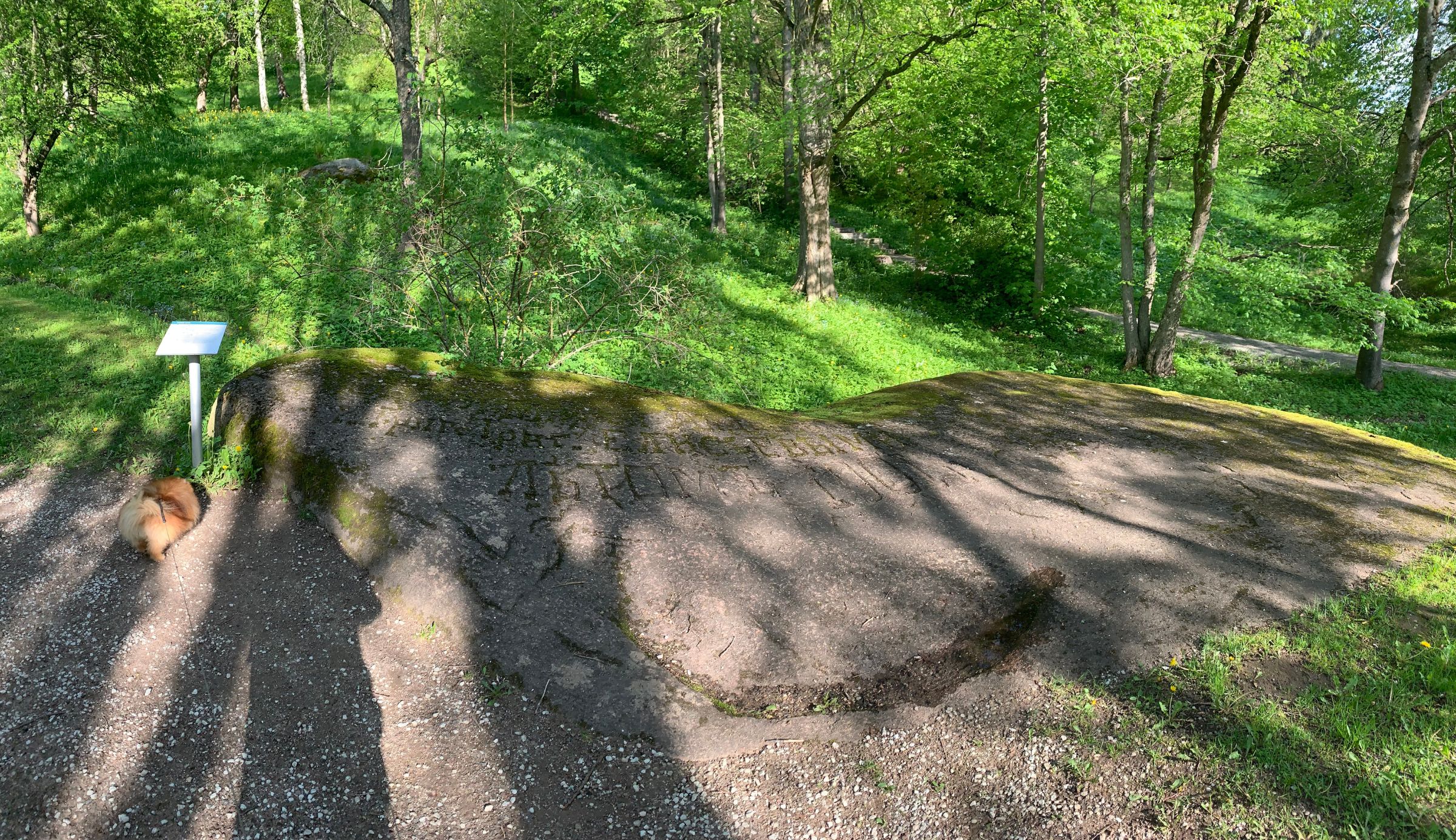 Kõndisin koeraga läbi pargi kui ta hakkas kivi ümber suure huviga nuuskimas käima ning otsustasin teda, kes on väga pisike, selle suure kivi kõrval jäädvustada.