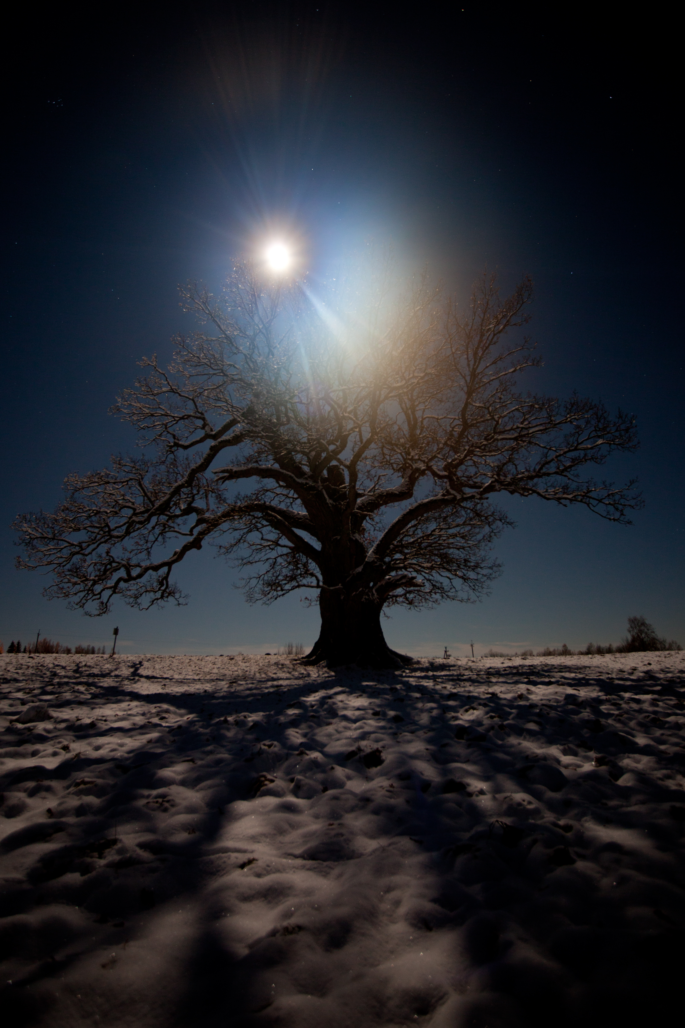 Pilt on tehtud öösel, kuuvalguses. Olime ainult mina ja Tamme-Lauri tamm. Tamm on minust kordades suurem ja natuke vanem :D aga meil oli tore. Ainult kuu ei tahtnud koostööd teha, paistis ainult ühelt poolt ja enamus ajast mulle silma.Eks tal olid omad põhjused. Vahest tekib küsimus kui see puu oskaks räägita...
