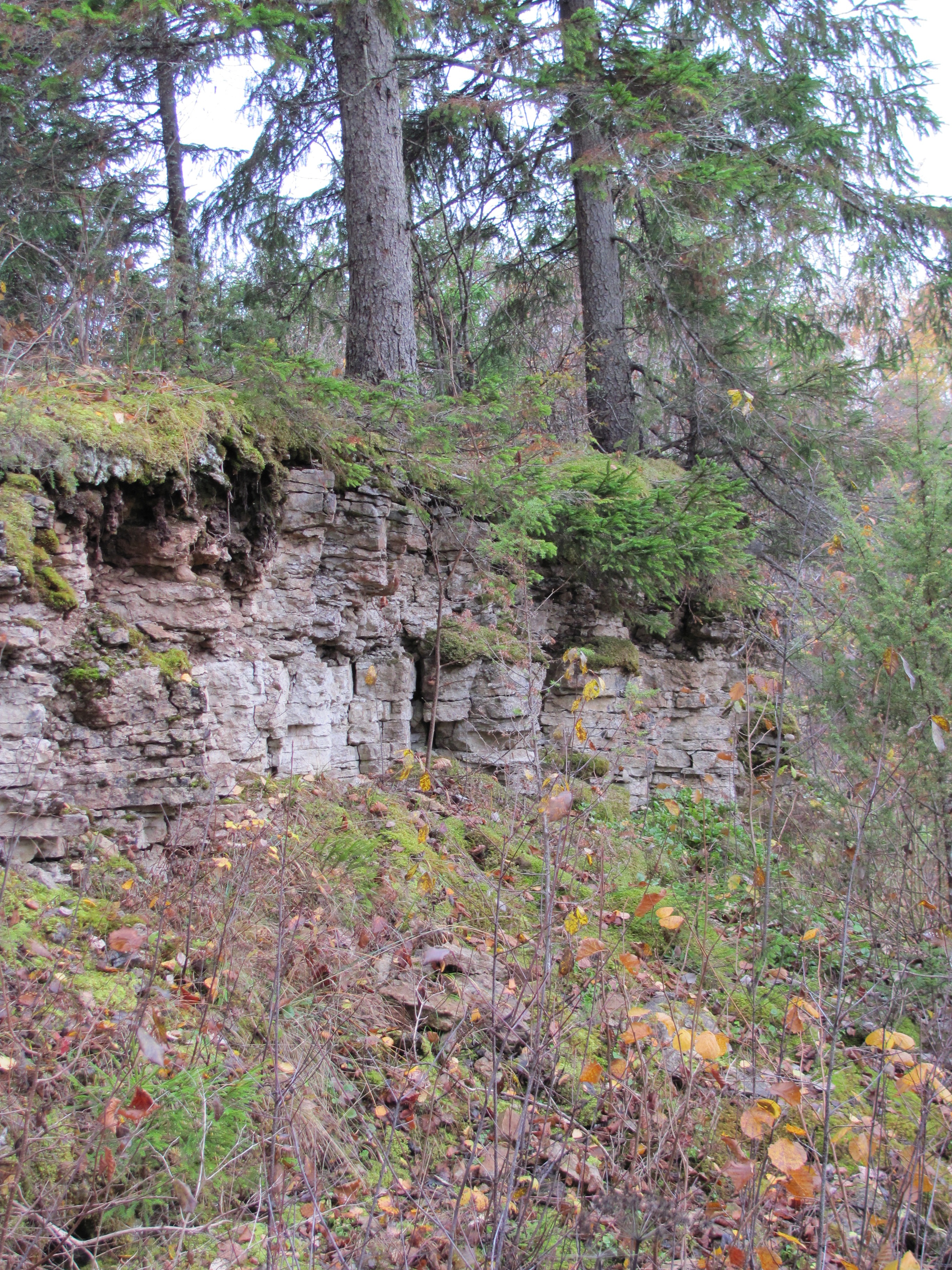 Laukna külatuumikust eemal pisikese tammederohe tee ääres on kaunis madal astang. Vana mere poolt kulutatud pangajupp on nüüd maakerke tagajärjel keset metsa.