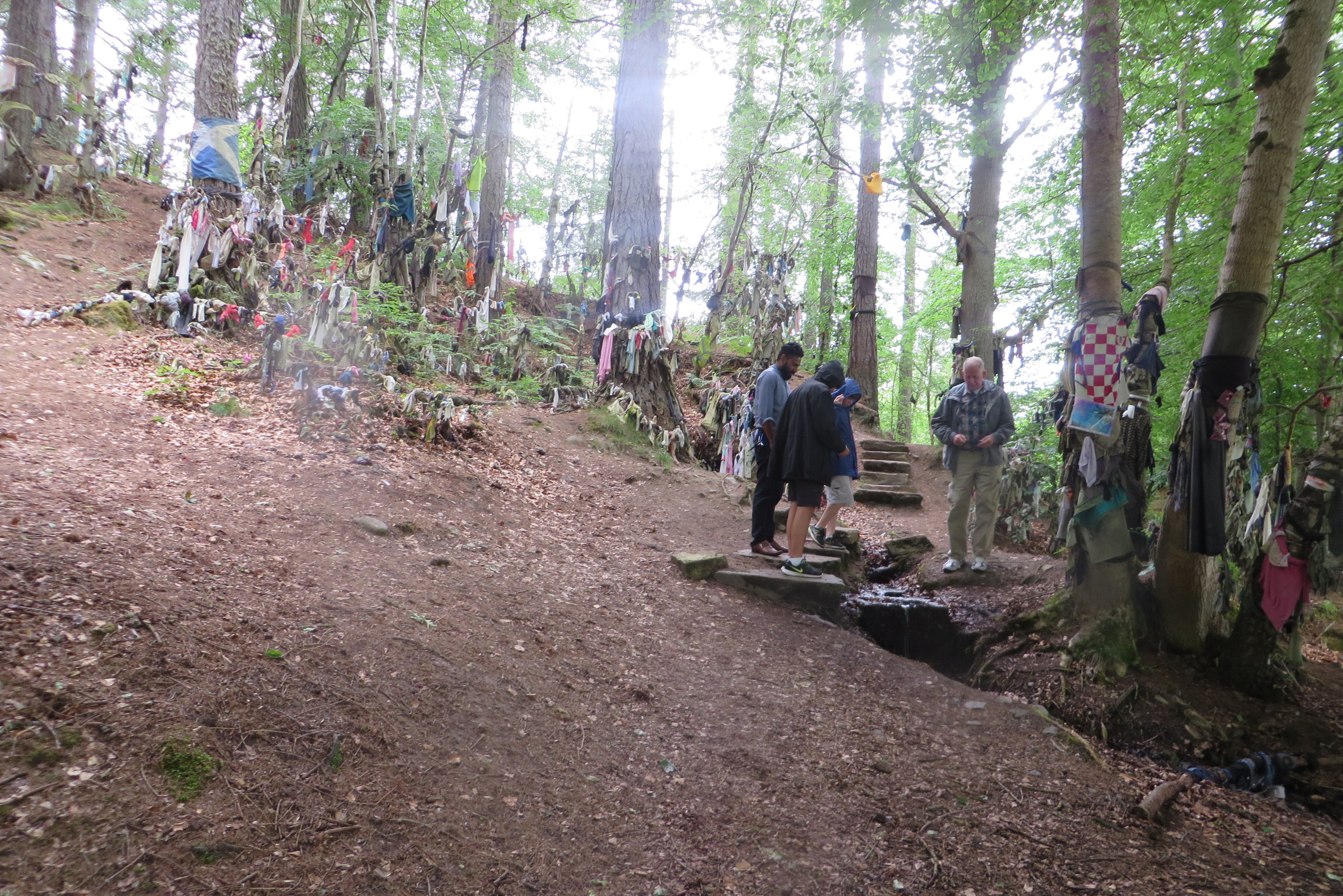 Püha allikas, kus usuti ja usutakse elavat allika vaim, kes aitab vabaneda haigustest ja probleemidest. Allika kõrval kasvab mets, kus puu oksad on täis seotud vanu riideid. Lisaks riideesemetele oli seal ka jalanõusid, riigilippe jne. Kirjanduse järgi võidi sellistes kohtades käia häda korral abi saamas. Eelkristlikul ajal arvati seal elavat loodusvaime kuid kristluse tulekul hakati kasutama kohavaimudena ka pühakuid. Moonlochy allikal on pühakuks St Baniface. Allikal kasvavate puude okstele oli seotud hiiglama palju riideid. See oli meile päris šokeeriv vaatepilt. Eestlased seovad väikeseid paelu, lõnga, aga seal olid sured riideesemed. Mõne eseme peale oli kirjutatud ka inimese soov Näiteks lugesime ühe lapse soovi jõuluvanale :). Kirjandusest on selliste allikate kohta lugeda, et kui sul on haigus, siis peaksid kastma ühe oma riideeseme allikasse ja paned siis puu oksale kuivama ja koos riide lagunemisega kaob ka sinu mure. Samal ajal kui meie seal olime, käis seal mitmeid inimesi. Keegi teadjam mees oli koos teistega ja rääkis nendega. Me nägime, kuidas ta viskas mündi allikasse ja arvatavasti rääkis teistele, mida sellises kohas tehakse.