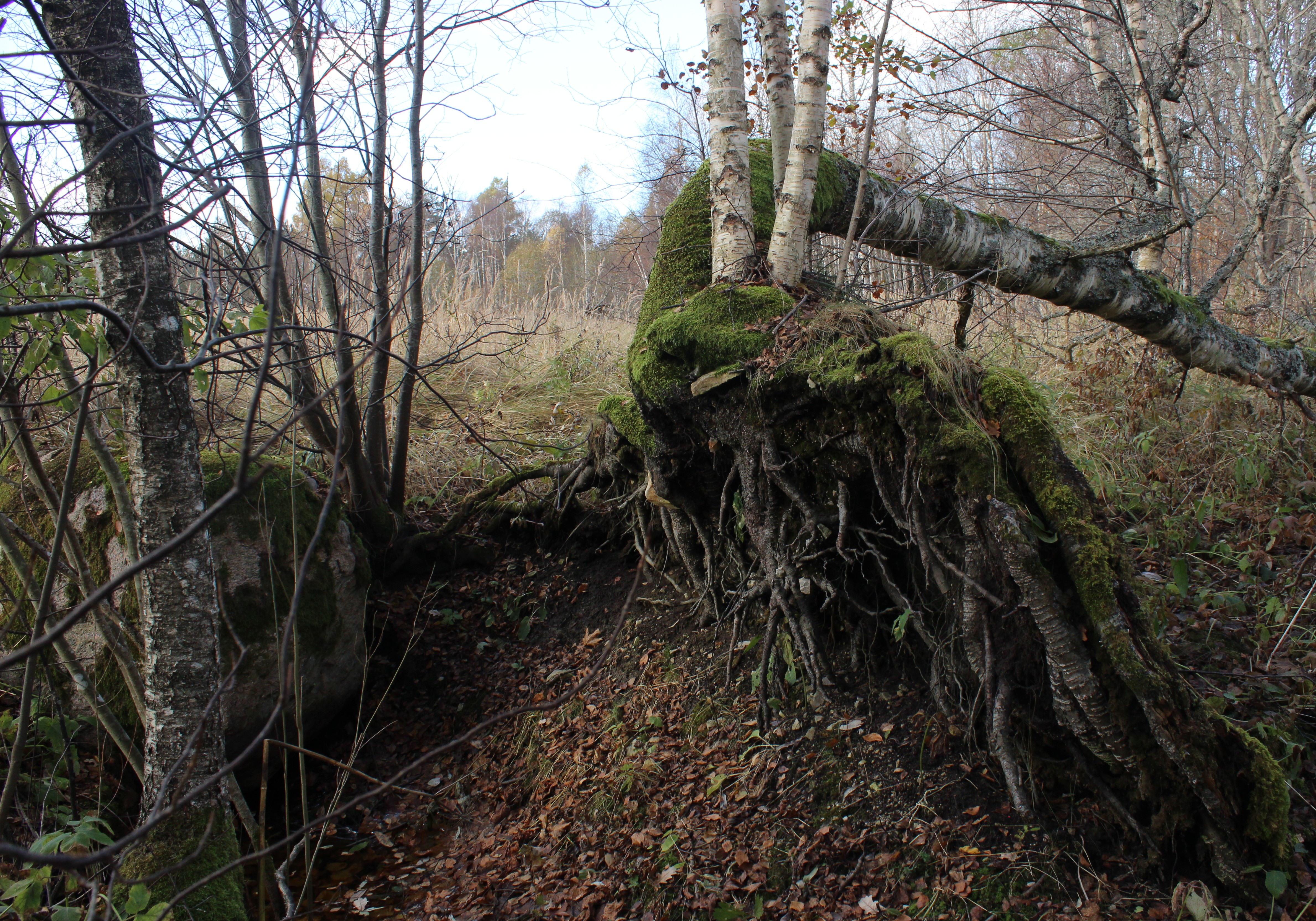 Kivimäe allikas ei olnud seekord palju vett. See-eest oli hästi näha võimas kivi, mille alt allikas välja jookseb ja vana kase juurestik kui hiiglasliku looma allika poole avatud suu.