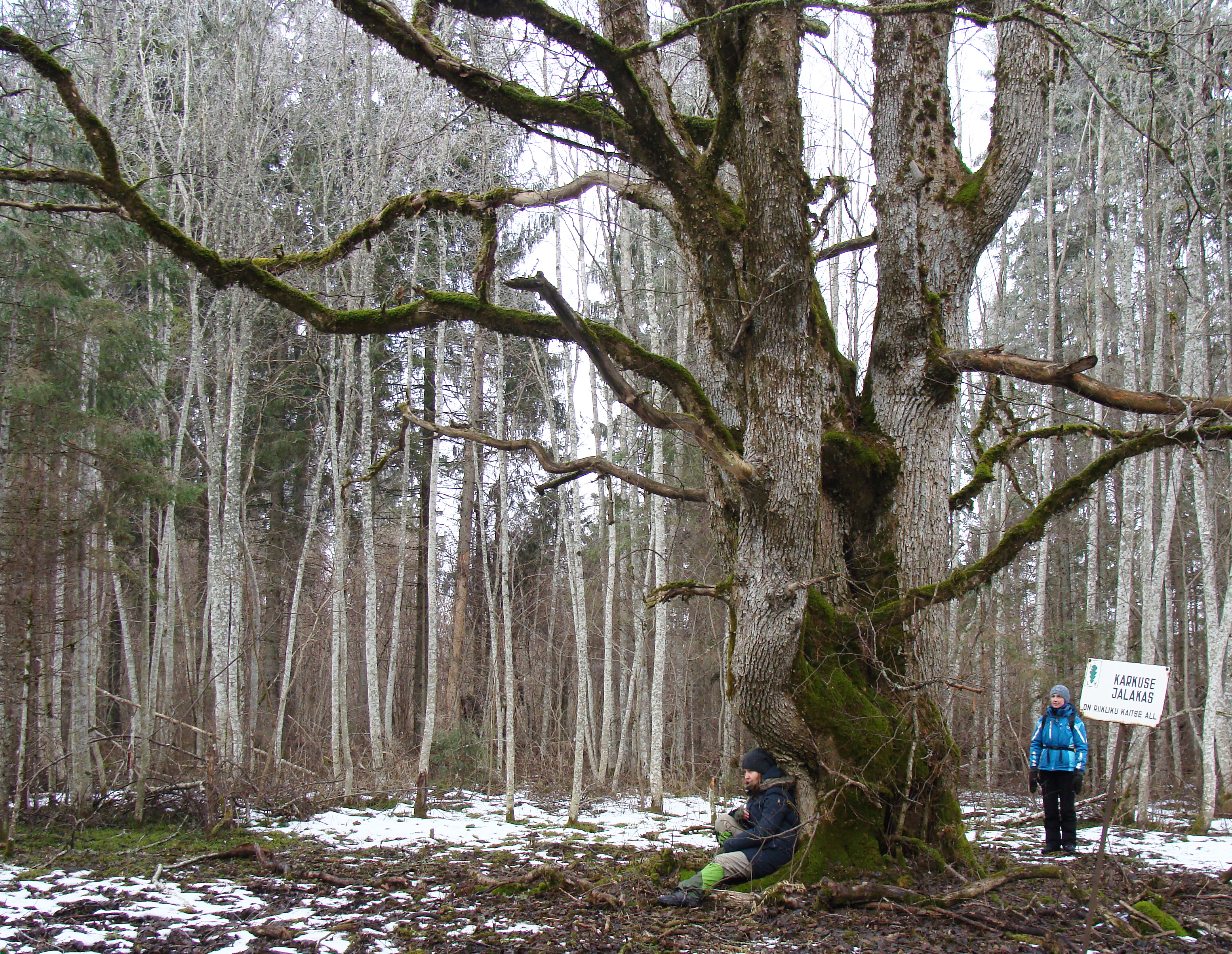 Auväärse hiiepuuga tutvusin ühel kaunil härmaehtes urbekuu päeval rännakul Karkusemäelt hiiekaevu juurde. Eesti Looduse andmetel on kõnealune jalakas rinnakõrgusest madalamalt mõõdetuna Eesti jämeduselt kolmas selleliigiline puu. 1998. aasta andmetel on tema tüve ümbermõõt kõige peenema koha pealt ehk poole meetri kõrguselt maapinnast 433 cm ja puu kõrgus 19 m. Tüvi haruneb 1,7 meetri kõrguselt kolmeks. Jämedaima tüve ümbermõõt oli kahe meetri kõrguselt maapinnast lausa 335 cm. Seega - tegemist on mitmesaja aastase jalakaga, mis omal ajal kuulunud Karkuse mõisapargi kunagiste puude sekka. Hiiepuu läheduses, umbes 60 m lõuna suunas, asub Karkuse ohvrikivi.