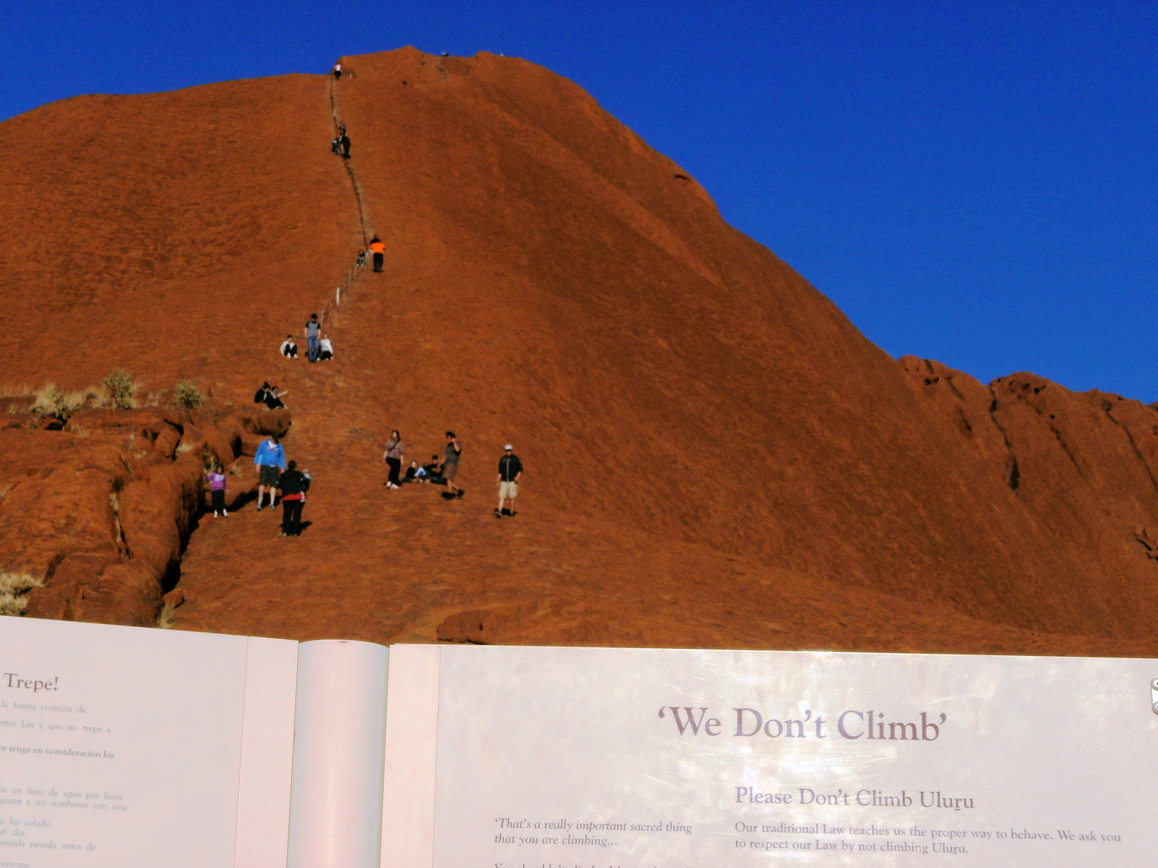 Austraalias on alatel 70.ndatest antud palju maid tagasi hõimurahvastele - Austraalia aborigeenidele - hallata ja vallata, et nad saaksid elus hoida oma kultuuri ja jätkata omi traditsioone. Maa ja pühad ning olulised (significant) paigad maastikus on side, mis ühendab olevat tänapäeva möödunud, kuid igikestva unenägudeajaga (dreamtime, dreaming). Üks oluline erand maade tagastamise poliitikas on olnud Uluru. Turismist tulev raha on liialt suur, et riskida sellega, et kohalik hõim võiks otsustada, paiga pühendamatutele külastajatele sulgeda. Kuigi teadmine on kasvanud, et selle mäe otsa ei ole sobilik ronida ja piirduma peaks vaid ringkäiguga ümber jalami, leidub siiski hulgaliselt neid turiste, kes ei hooli või on ronimise sobimatusest õndsas teadmatuses. Matkasellidele ulatalb siinkohal lahkelt abikäe ka Austraalia riik, kes on ronimistee varustanud käsipuuga ja sildi kõrvale, mis ütleb "Palun ära roni", pannud teise sildi, mis tutvustab ohutusmeetmeid ronimise ajal.