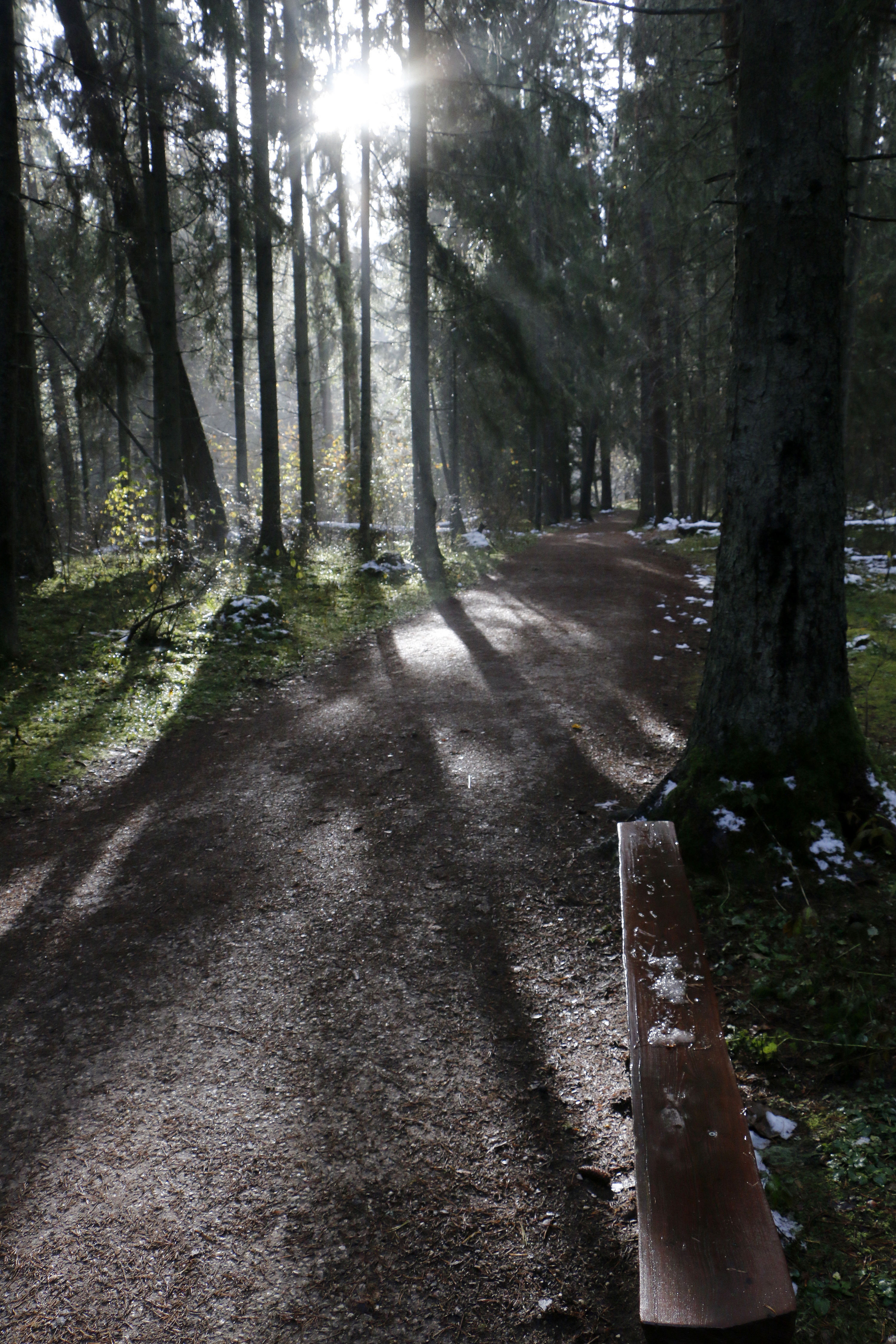 Käisime pühapäeval Taevaskojas. Lahkudes tuli ka päike välja, heites teerajale puude varje.