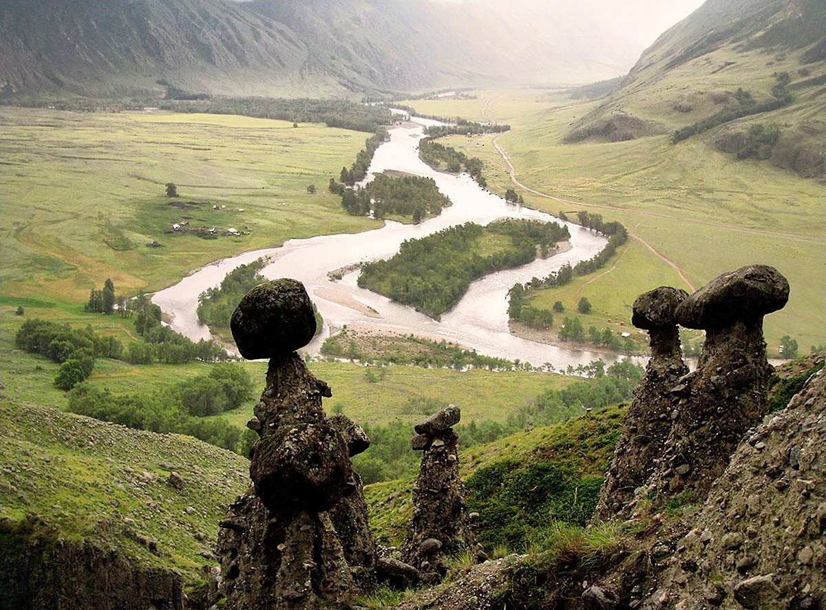 Долина Чулышмана находится в живописном и далеком крае Республики Алтай, в ней, прямо между огромными скалами протекает одно именная бурная речка известная под названием Чулышман. Именно в этой долине находятся древнейшие курганы, возрастом более 3-х тысяч лет. По словам историков, эти сооружения сохранились от народностей, некогда проживавших на этой территории. К тому же именно тут проходили пути многих кочевых племен, переправляющихся в Монголию.Алтайцы почитают это место священным. Там проводят обряд поклонения Алтаю. Участники вешают на ветви деревьев ритуальные ленты