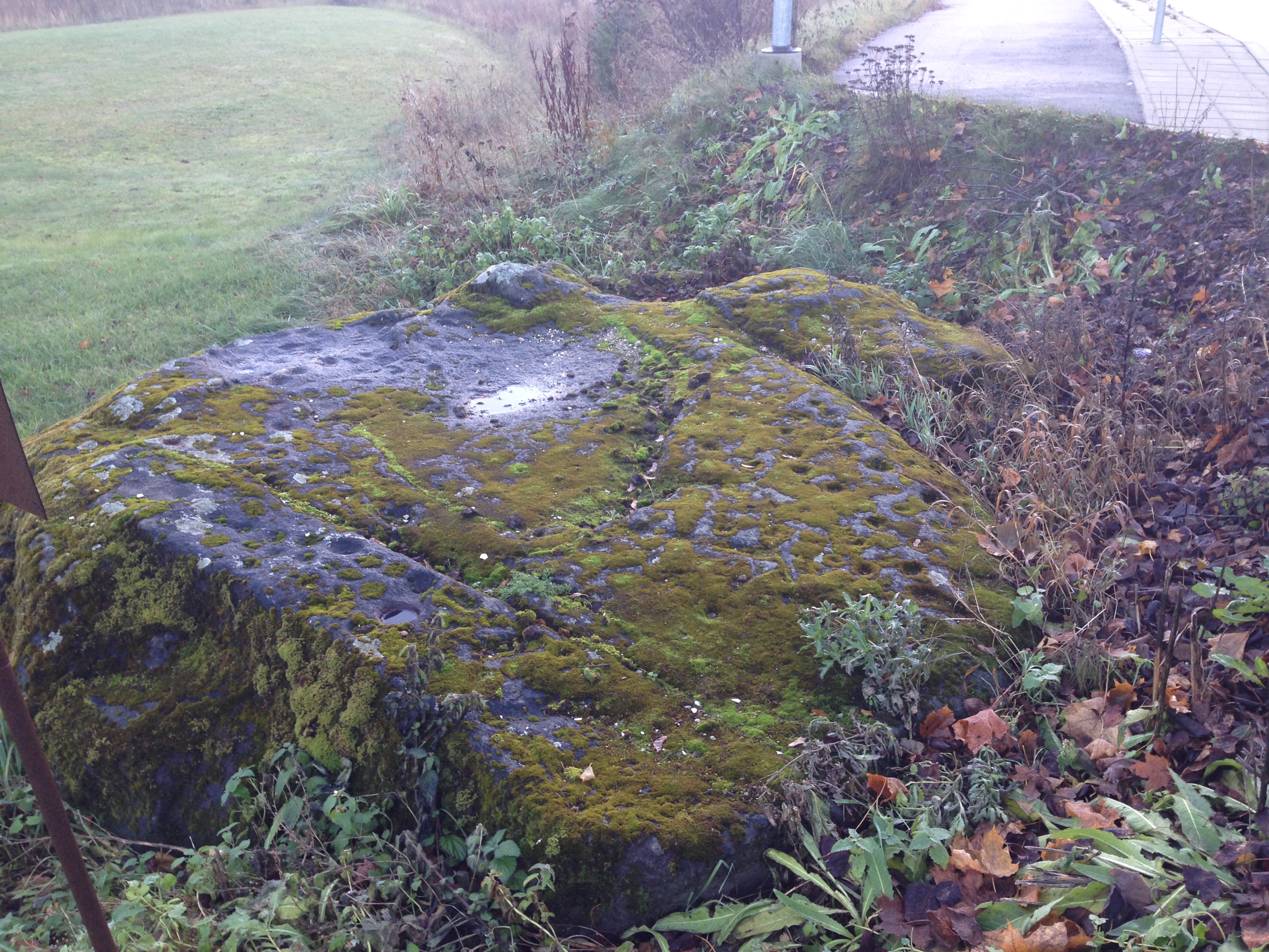 Uhkustundega sõidan igapäevaselt tööle ja tagasi minnes mööda niivõrd suurest ohvrikivist, mille hulgalised lohud on tänaseks kattunud samblaga. Antud fotol on ohvrikivi (nõiakivi) keskel asuv rist piiritähisena sügisvihma veeloigukese all.