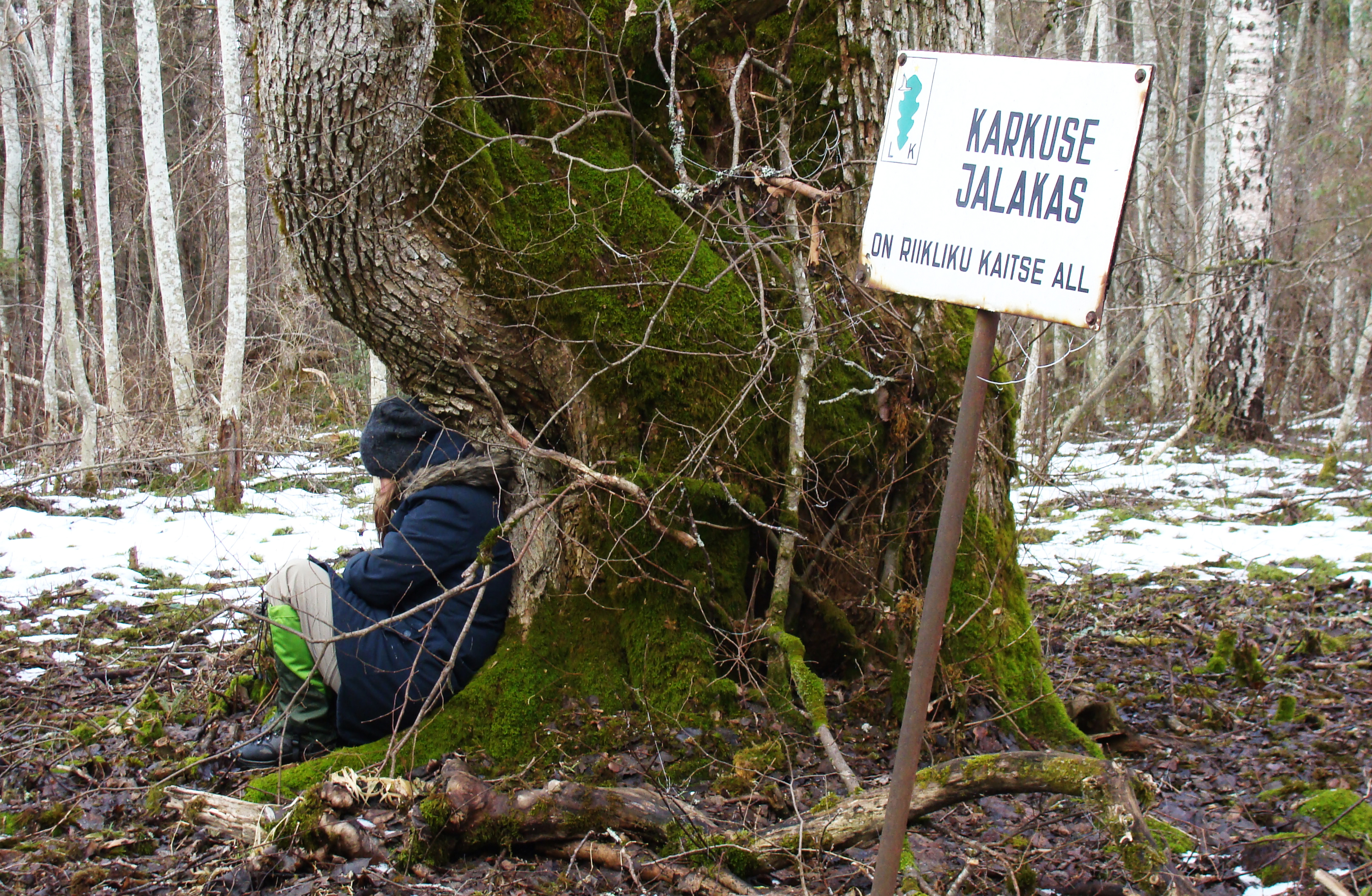 Auväärse hiiepuuga tutvusin ühel kaunil härmaehtes urbekuu päeval rännakul Karkusemäelt hiiekaevu juurde. Leidsime auväärse jalaka juures aega puhkamiseks ja mõtisklemiseks. Puu võttis rännulise sõbralikult oma embusesse. Eesti Looduse andmetel on kõnealune jalakas rinnakõrgusest madalamalt mõõdetuna Eesti jämeduselt kolmas selleliigiline puu. 1998. aasta andmetel on tema tüve ümbermõõt kõige peenema koha pealt ehk poole meetri kõrguselt maapinnast 433 cm ja puu kõrgus 19 m. Tüvi haruneb 1,7 meetri kõrguselt kolmeks. Jämedaima tüve ümbermõõt oli kahe meetri kõrguselt maapinnast lausa 335 cm. Seega - tegemist on mitmesaja aastase jalakaga, mis omal ajal kuulunud Karkuse mõisapargi kunagiste puude sekka. Hiiepuu läheduses, umbes 60 m lõuna suunas, asub Karkuse ohvrikivi.
