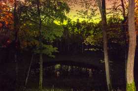 Сааремаа. Деревья еще были в осенних красках и ночь безлунной. Поэтому сам кратер находился в полной темноте. По