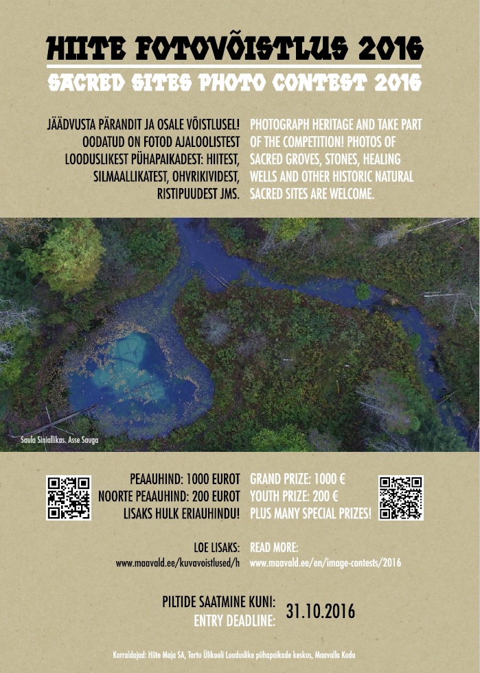 Käimas on Hiite kuvavõistlus 2016, kuhu oodatakse fotosid hiitest ja teistest looduslikest pühapaikadest. Võistluse eesmärk on väärtustada põliste pühapaikade kultuuri- ja looduspärandit, jäädvustada nende hetkeseisund ning suunata inimesi pühapaiku külastama ja hoidma.
