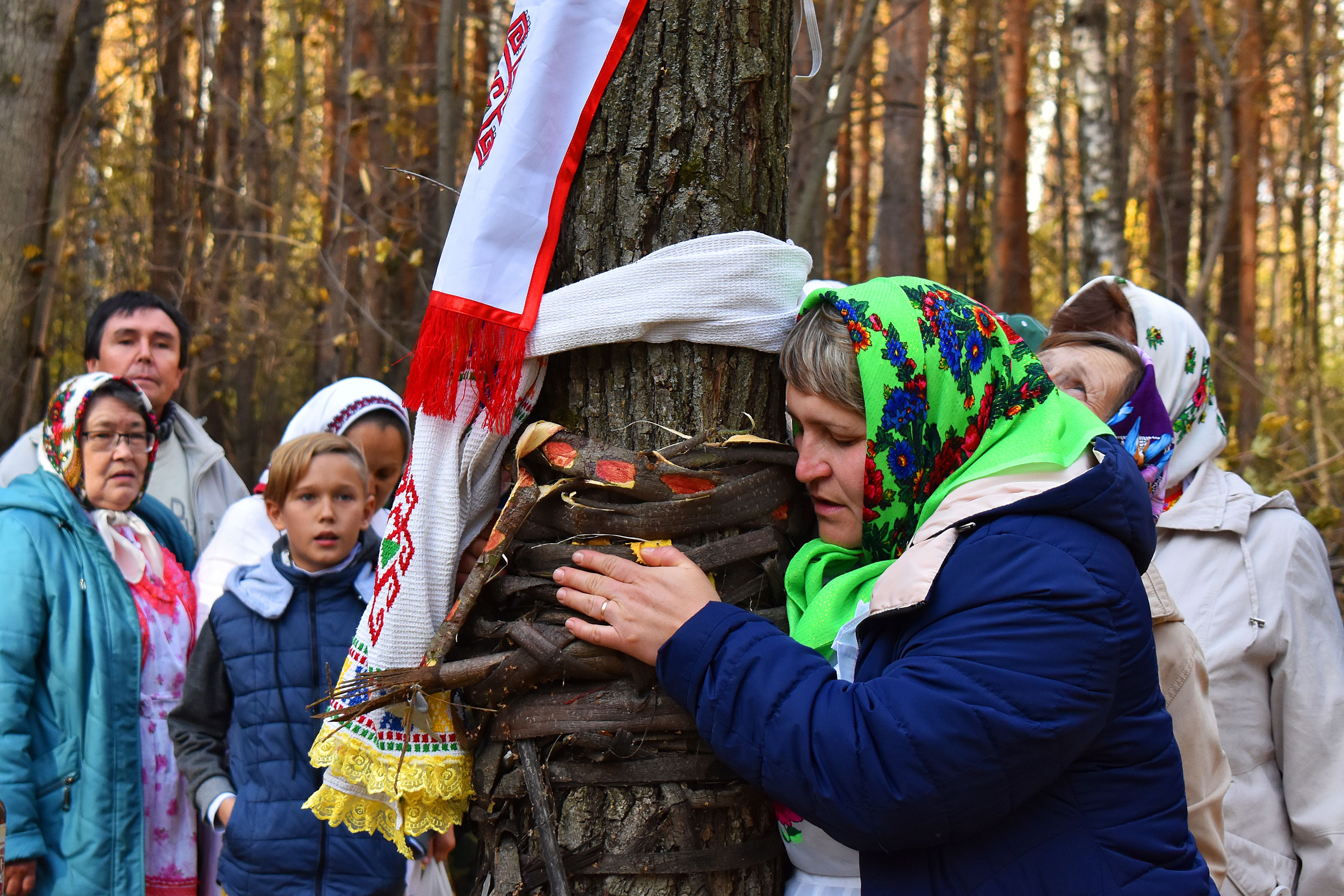 Pilt on olustikuline, kuid selge ja tugeva isikliku sõnumiga – mari inimesed usaldavad ja armastavad puid ning pühapuu kõnetamine on vahetu ja isegi hell toiming. Siin avaldub ürgne keel, milles soome-ugrilased loodust kõnetavad. On ju ka eestlased harjunud puude juures käima, neid puudutama, silitama ja kallistama. Võib ka öelda, et keel, milles me kõnetame loodust on hõimurahvastel väga sarnane.